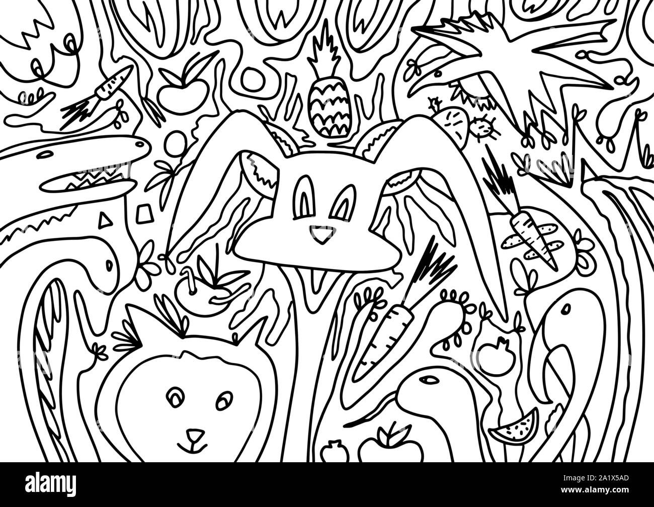 Forest Animals Black And White Vector Illustration For Coloring