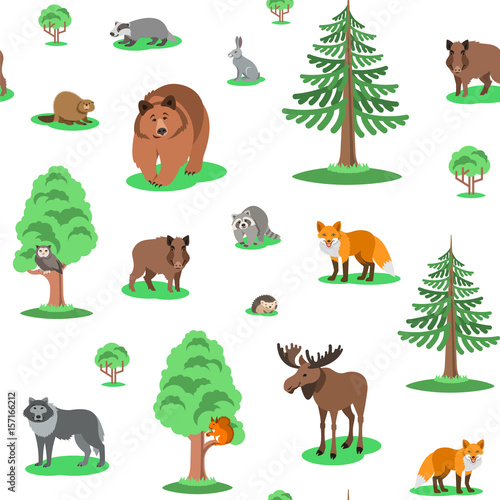 Cute Forest Animals Seamless Background Pattern Vector Cartoon