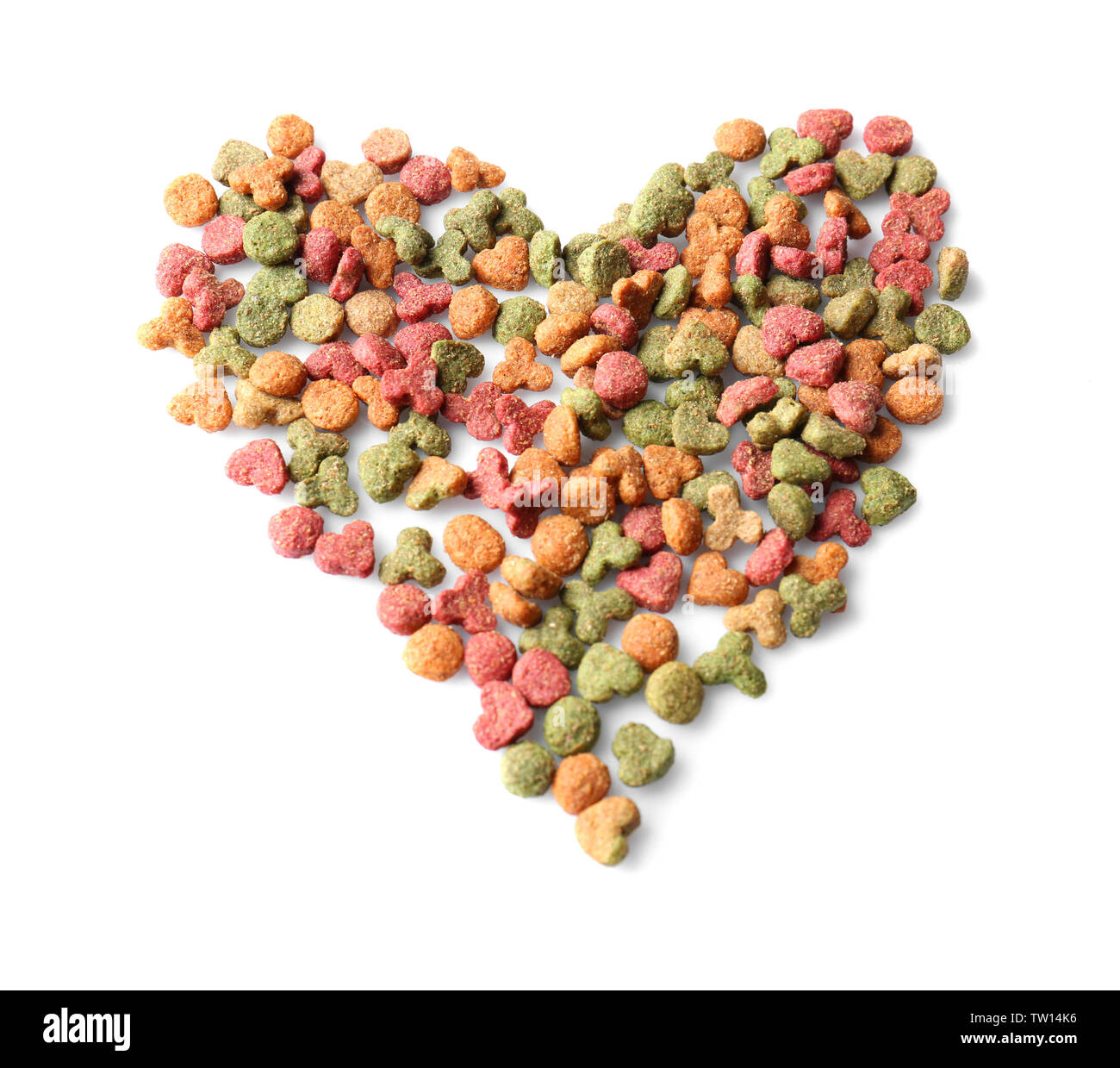 Heart Shape Made Of Dry Food For Animals On White Background Stock