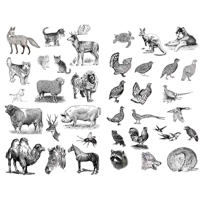 1 Pcs Black Sketch Animals Precut Cute Aesthetic Bullet Journal