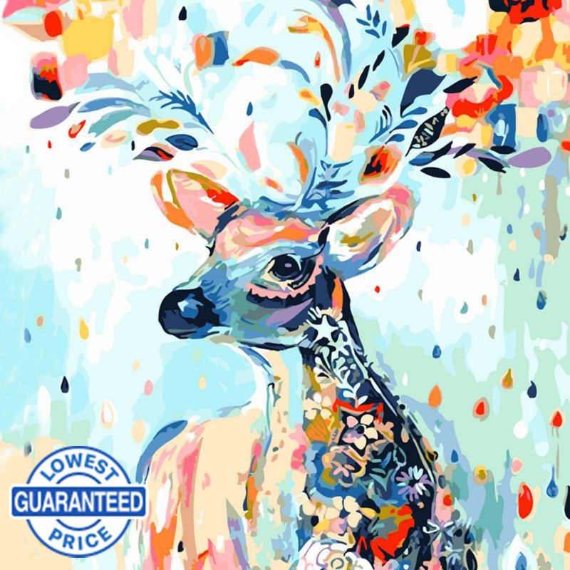 Diy Color Deer Head Animals Painting By Numbers Kit Drawing