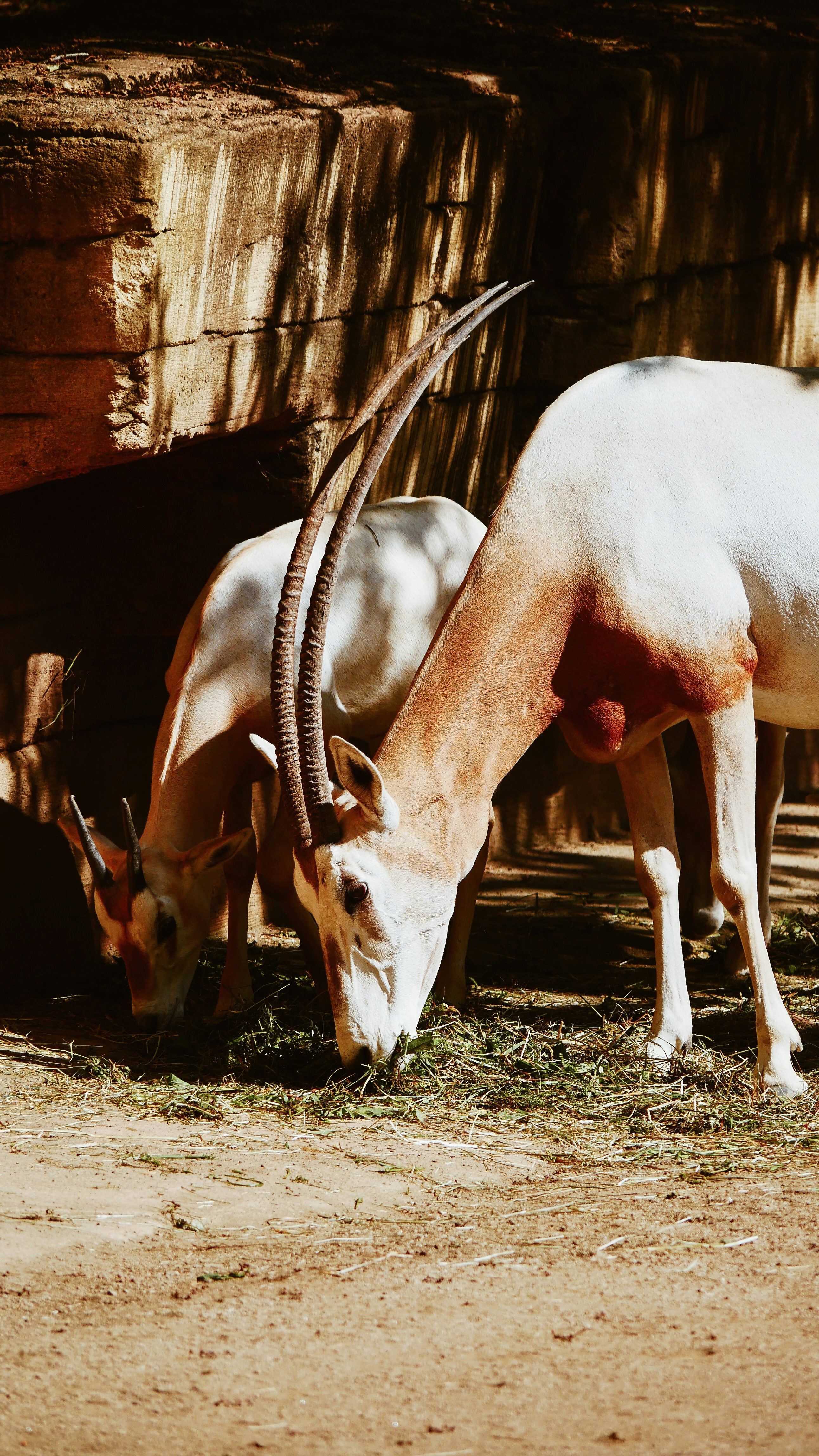 Two White Horned Animals Eating Grass Photo Free Animal Image On
