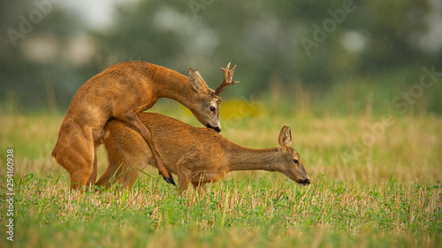 Roe Deer Capreolus Capreolus Buck And Doe Copulating During