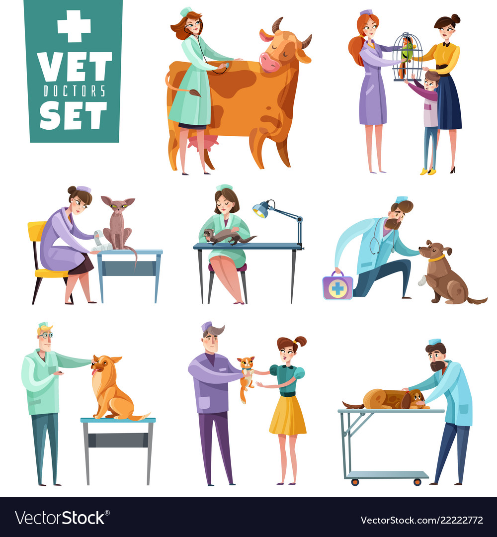 Vet Doctors And Animals Set Royalty Free Vector Image