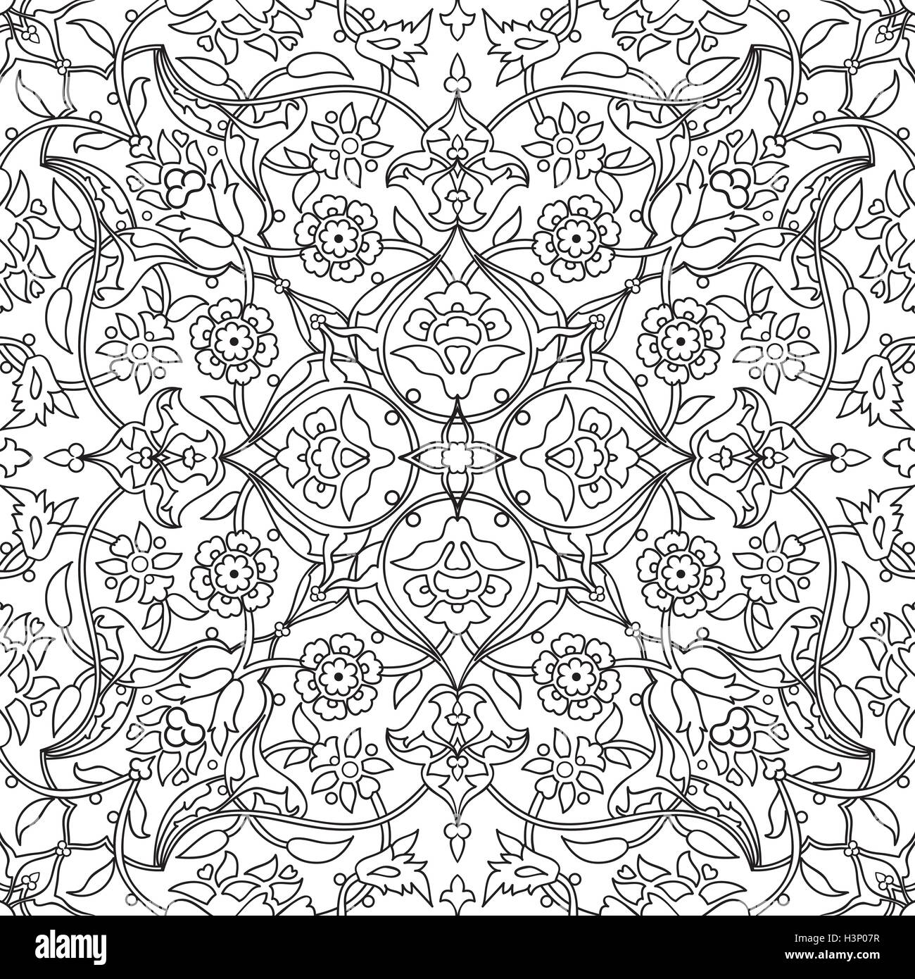 Stylized Flowers Oriental Doodle Wallpaper Seamless Abstract Stock